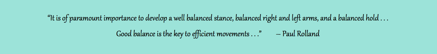 Balance is a necessary component to arriving at maximum energy efficiency with minimal effort, a sensation we interpret as relaxation.  In order for our bodies to remain balanced in resistance to gravity, several points must be considered:  1) weight must be equally distributed over the point (or points) of balance; 2) the musculature used to maintain a certain position must be the equivalent of the external force (i.e. gravity, leverage); and 3) maintaining balance requires movement, adjustment and flexibility.  At celloessentials.com, you will discover the the necessary foundation of balance for a healthy physical approach to cello playing.   This site  provides photos and video demonstrations  to help illustrate the ideas and concepts.